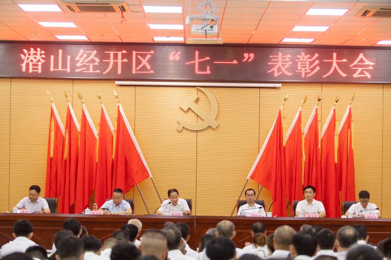 6月30日,潜山经开区召开“七一”表彰大会,市委常委、经开区党工委书记、管委会主任张文胜出席会议并讲话。党工委副书记、管委会副主任方向明主持会议。