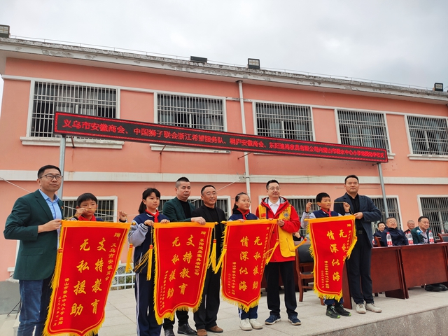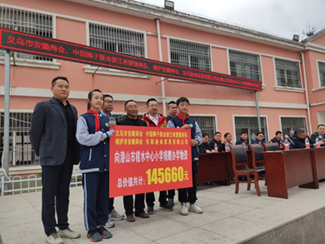 为表达对山区学校的关爱之情,11月4日上午,潜山经开区非公企业关工联合会携手义乌市安徽商会、中国狮子联会浙江希望服务队、桐庐安徽商会、东阳迪尚家具有限公司到潜山市槎水镇中心小学开展助学公益活动。潜山市政协、经开区、工商联、教育局、关工委、槎水镇相关负责同志出席捐赠仪式。
