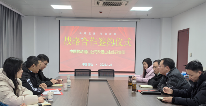 1月27日潜山经开集团与潜山移动公司签署战略合作协议,集团公司园区的低碳园区、低空经济、虚拟电厂等重点领域,双方围绕数字化转型、产业协同创新等议题展开深入座谈,此次签约为起点,凝聚双方合作合力,助力企业降本增效、提质升级,共同探索“产业+数字”融合发展的新路径。为区域现代化产业体系建设、新质生产力发展贡献更多国企力量与通信智慧。
